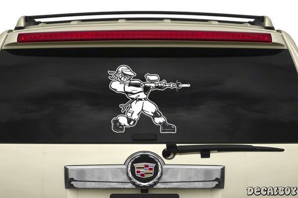 Paintball Decals & StickersThe decal is made of high quality weather-resistant vinyl, with an average outdoor life of 5-7 years. They are the same material used for semi-trucks and outdoor signs.These are die cut,vinyl decals. They are not inkjet printed with a white or clear background. What you see in black represents the vinyl in color of your choice. Easy to Apply! Easy Installation Instructions Included! |